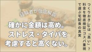 妻と私が実感した宅配食のメリット、つくりおき.jpのメリットとデメリット、感想は次の通りです。